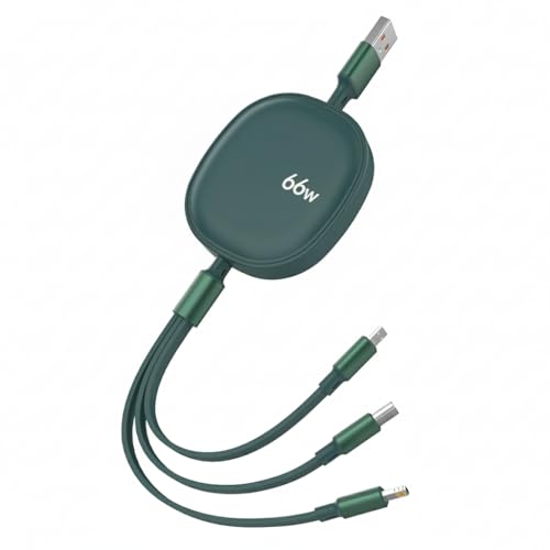Multi Charger Cable, 66W PD 3 in 1 Retractable Charging Cable Fast Charge with iP/Micro/Type C Port, Multiple USB Cables for Phone Samsung Galaxy Huawei Xiaomi Laptop Tablet PS5 Android -1.2M