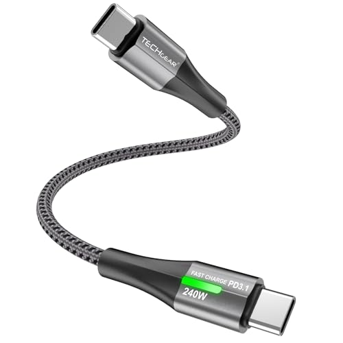 TECHGEAR USB C to USB C Charger Cable, 30CM 240W PD3.1 Type C Super Fast Charging LED Light Indicator Cable for MacBook Pro, HP Dell Asus Acer Laptop, iPad Pro/Air/A16, S25 S24, iPhone 17 16, PS5 etc