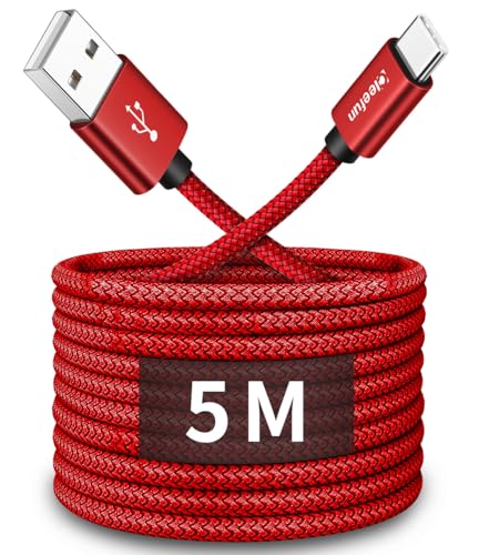 CLEEFUN 5m/16ft Durable Extra Long USB C Cable, PS5 Controller USB A to Type C Fast Charger Nylon Charging Lead for Samsung Galaxy S25 S24 S23 S22 S21 S20 fe S10 S9 Note 20 10 Plus,iPhone 15 16,Switch