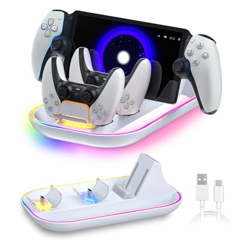 PS Portal Charger Dock – 3-in-1 RGB Charging Dock Station for PS Portal & PS5 Controllers with Indicator, Type-C Cable, Dual Holder for PlayStation Remote – Gaming Setup for PlayStation Players