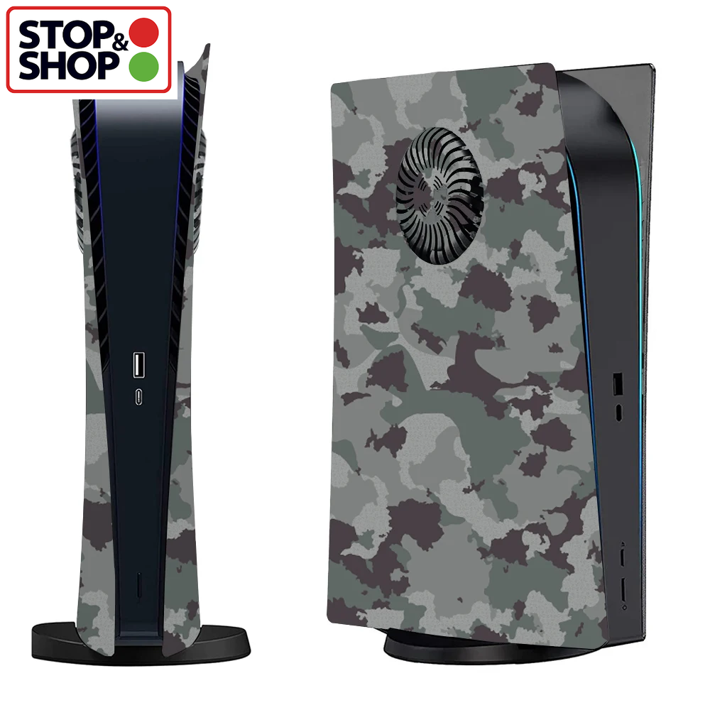 Skin for PS5 Digital Edition Game Console, PVC Full Cover Game Console Sticker and 2 Controller Sticker, Costum Protective Decal for Play Station 5 -Camouflage Grey