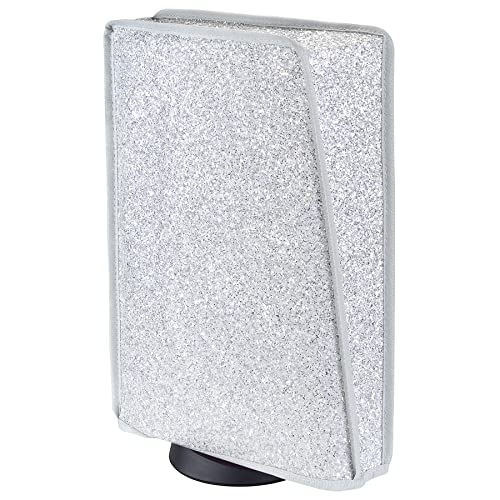 PlayVital Glow in The Dark Dust Cover for ps5, Soft Neat Lining Dust Guard for ps5 Console, Anti Scratch Waterproof Cover Sleeve for ps5 Console Digital Edition & Disc Edition - Sparkle Silver