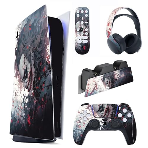 playvital Full Set Skin Decal for ps5 Console Digital Edition, Sticker Vinyl Decal Cover for ps5 Controller & Charging Station & Headset & Media Remote - Dark Clown