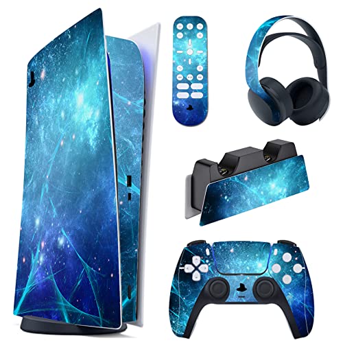 playvital Blue Nebula Full Set Skin Decal for ps5 Console Digital Edition,Sticker Vinyl Decal Cover for ps5 Controller & Charging Station & Headset & Media Remote