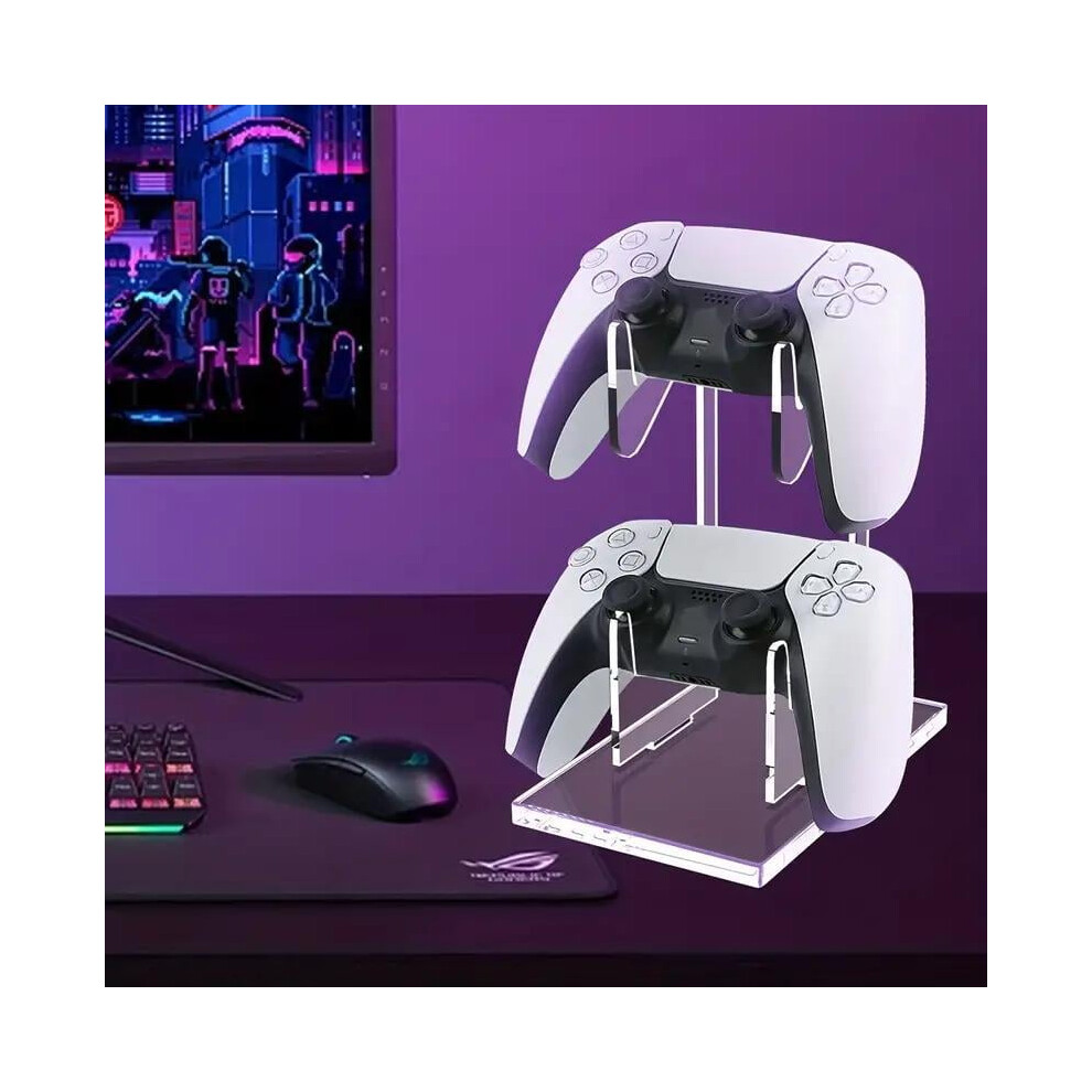 Dual Game Controller Stand with Headset Holder, Universal Fit for PS5 Xbox Switch, Clear Acrylic