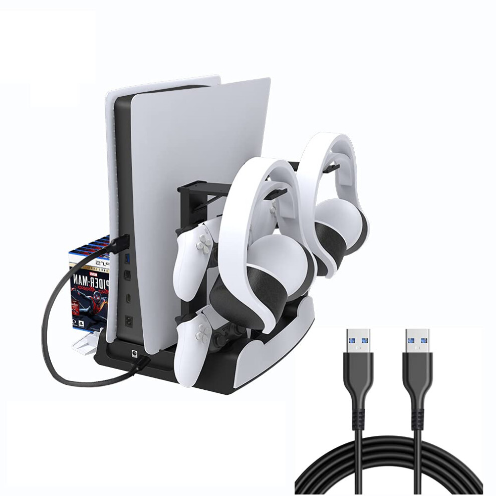Cooling Stand for PS5 with Dual Fans, Fast Controller Charging, Headset and Game Disc Storage