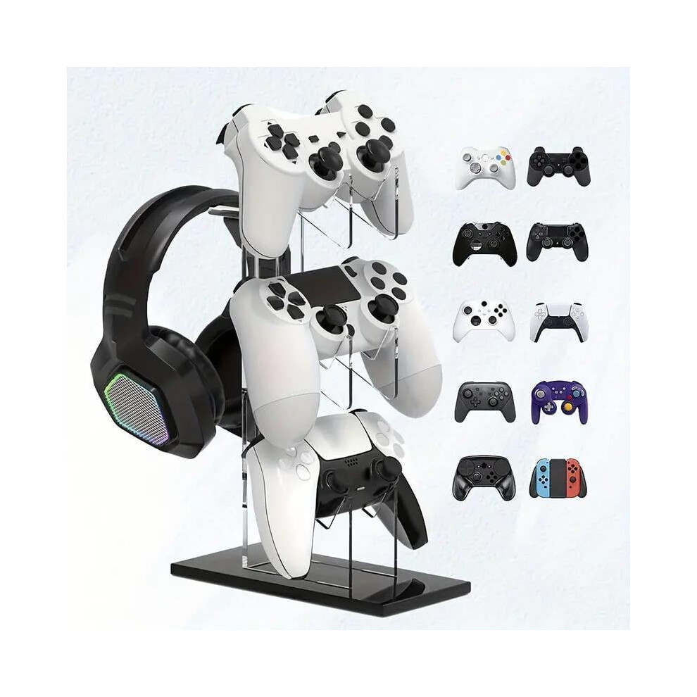 (Clear, 1 Piece) 3-layer Game Controller Stand & Headphone Stand, Storage Stand For PS5 S4 Controller, Controller Holder Headset Stand Gaming Accessor