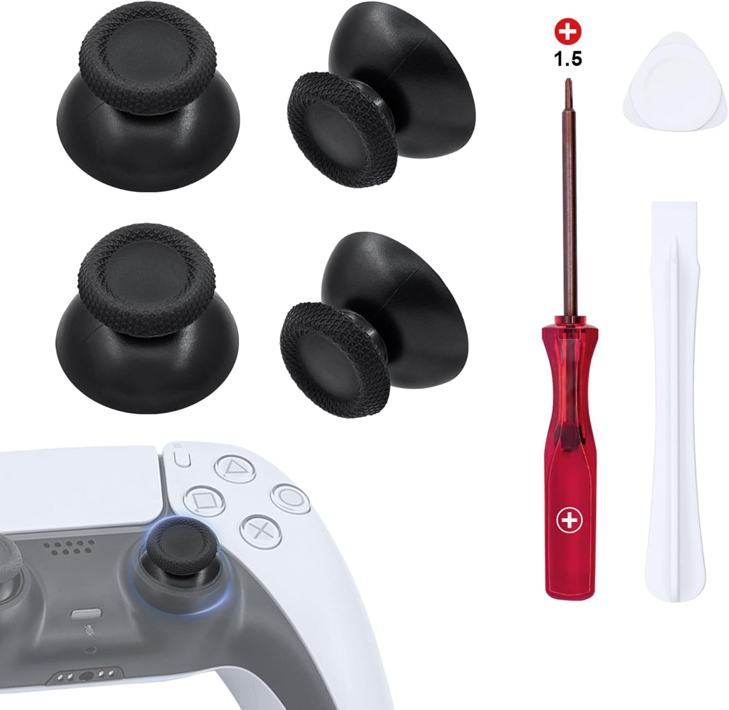 Joystick Thumbstick Replacement Compatible with PS5 Controller, HAVIRI Thumbsticks Repair Kit with Thumb Grips Caps, Screwdriver, Triangle Paddle and Pry Tool for PS5 Joystick Replacement
