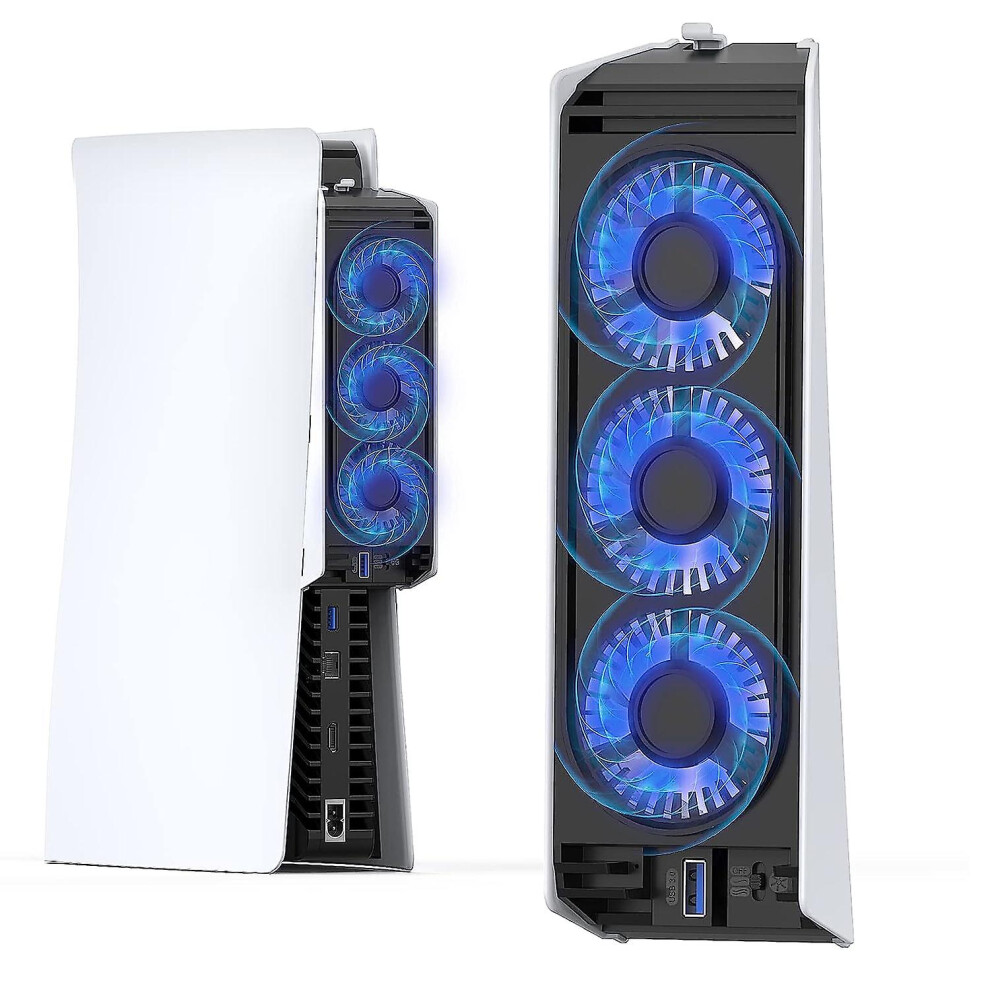 PS5 Cooling Fan with 3 High-Speed Fans for PS5 (Disc & Digital) â 2-Speed, USB 3.0 Passthrough, LED Lights, Elastic Lock