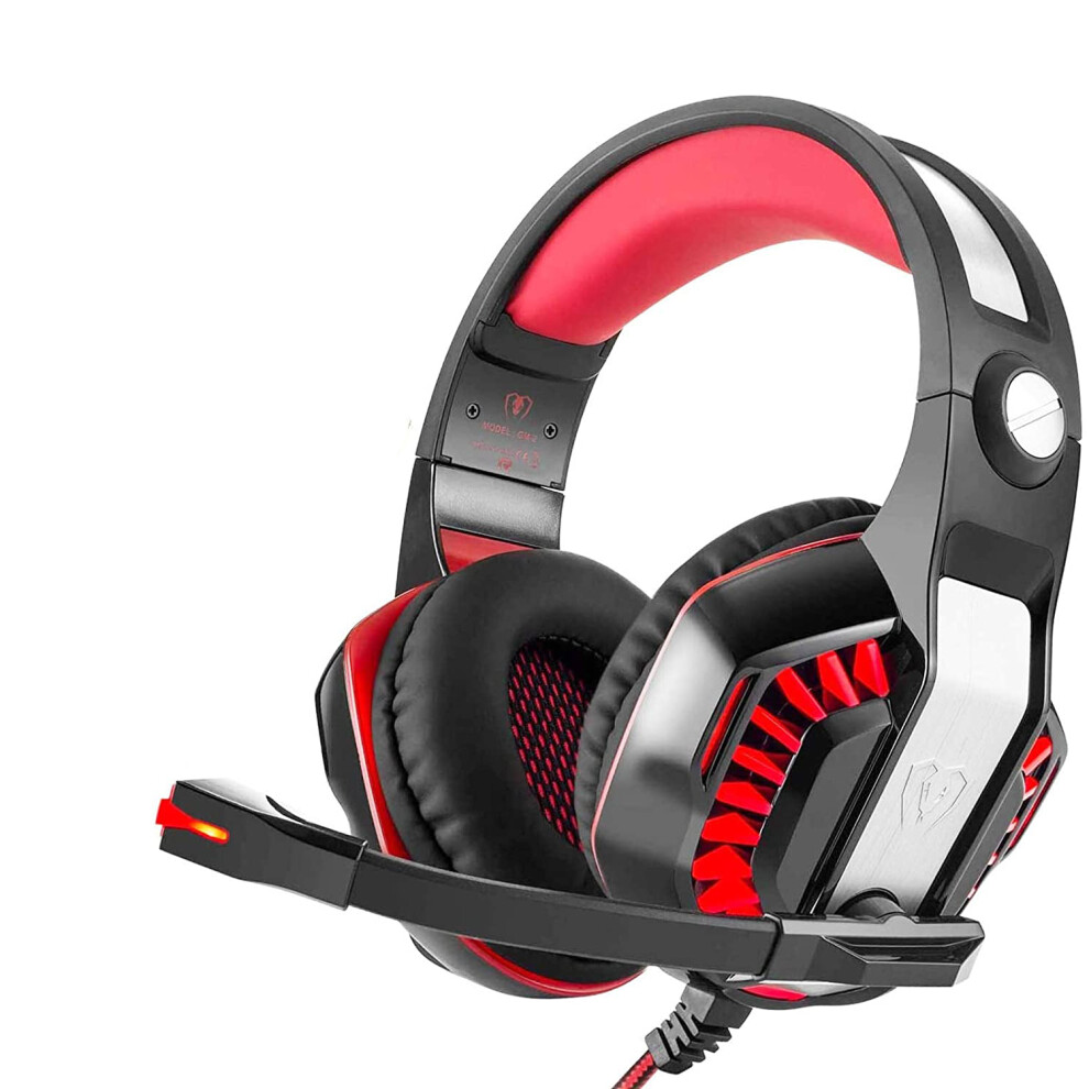 Memory Foam Gaming Headset for PS4, PS5, Xbox One, PC, Mac, Computer, Durable Frame, Adjustable Microphone, LED Lights, Detachable Noise-Cancelling