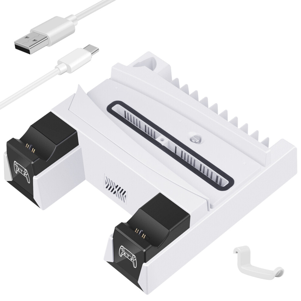Controller Charger for PS5/PS5 Slim: PS5 Stand Cooling Fan and Controller Charger Station, PS5/PS5 Slim Accessories Vertical Charging Dock Stand for PlayStation 5 Slim Console (White)