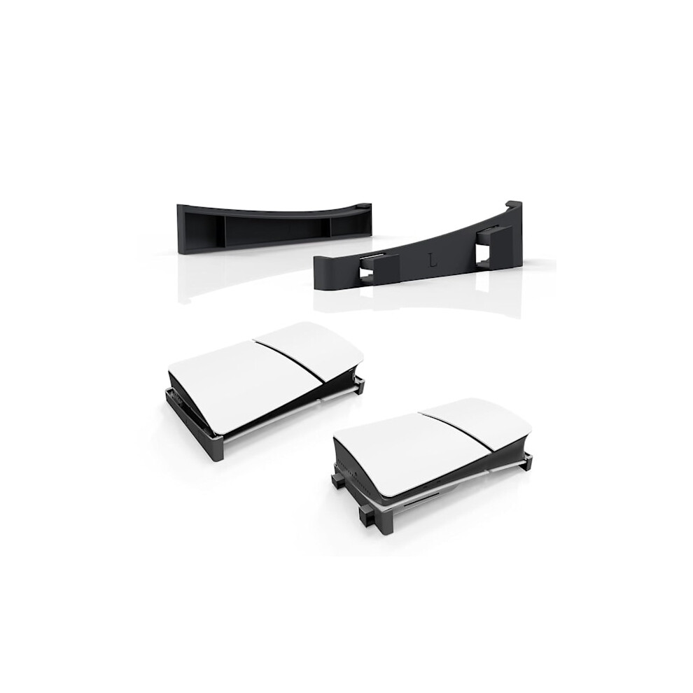 4Pcs for PS5 Slim Stand Console for PS5 Slim Horizontal Stand Bracket Holder Flat Base Compatible with Sony PlayStation 5 Slim Disc Edition Accessories (Black and Transparent)