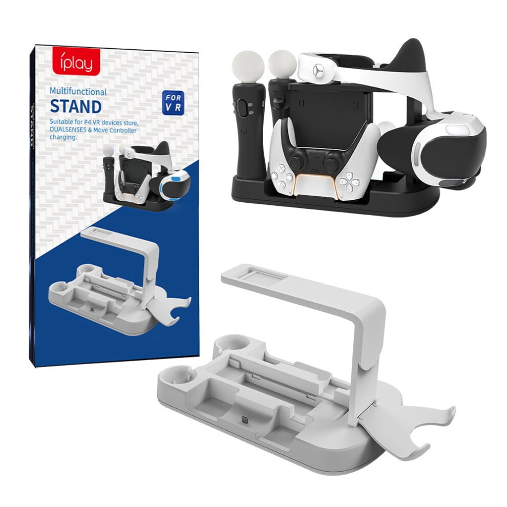 6-in-1 PS5 Storage & Charging Station: VR Charger, Disc Rack, Headset Hook, Fast Contact Charging | Compatible with PS5