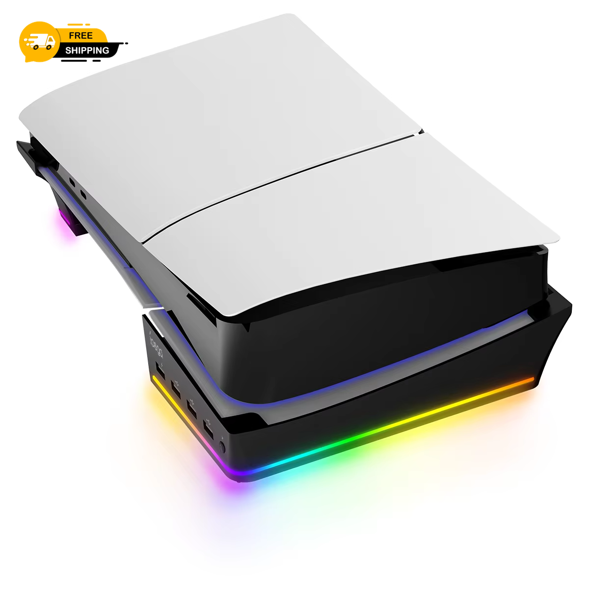 PS5 Slim Cooling Fan 3 Speed LED Light USB 3.0 Hub For Disc & Digital Console UK