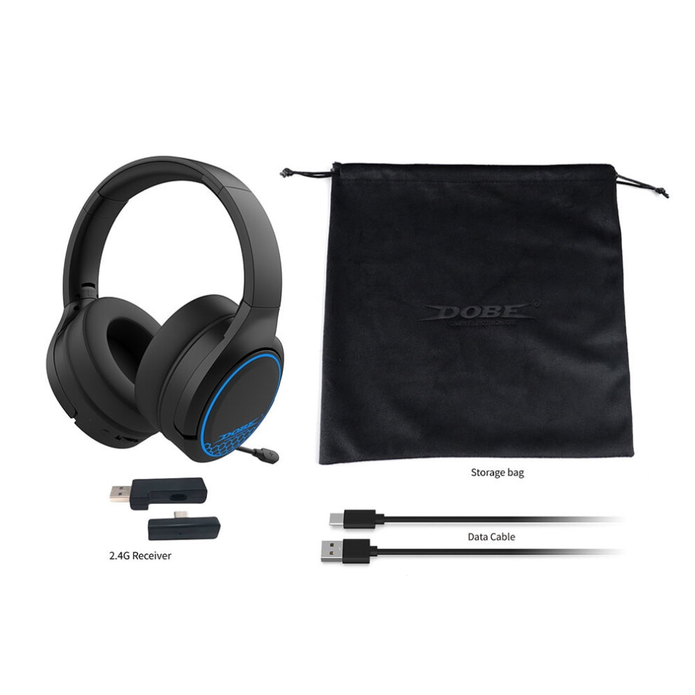 PS5 Wireless 2.4G Gaming Headset with RGB, Mic â Compatible with PS4/Switch/PC, Over-Ear Stereo, Noise-Canceling Mic, Long Battery