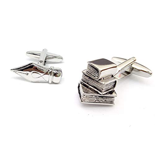 Pen Nib & Books Stack Mixed Pair of Cufflinks