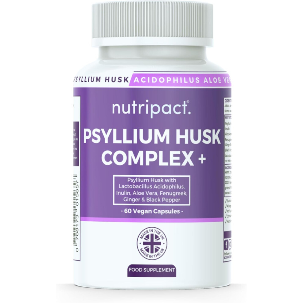 Psyllium Husk Capsules 500mg x 60 High Strength Herbal Vegan Natural Fibre UK