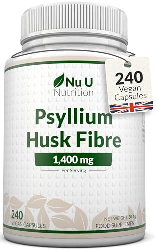 Psyllium Husk Fibre Supplement - 1400mg per Serving - 240 Vegan Capsules - Natural Soluble Prebiotic Fiber from Plantago Ovata Seeds - Made in The UK - Nu U Nutrition