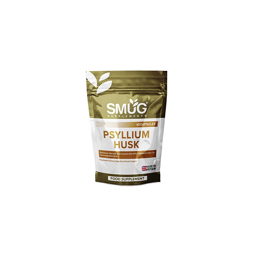 SMUG Supplements Psyllium Husk Fibre Capsules - 60 High Strength 500mg Fiber Pi