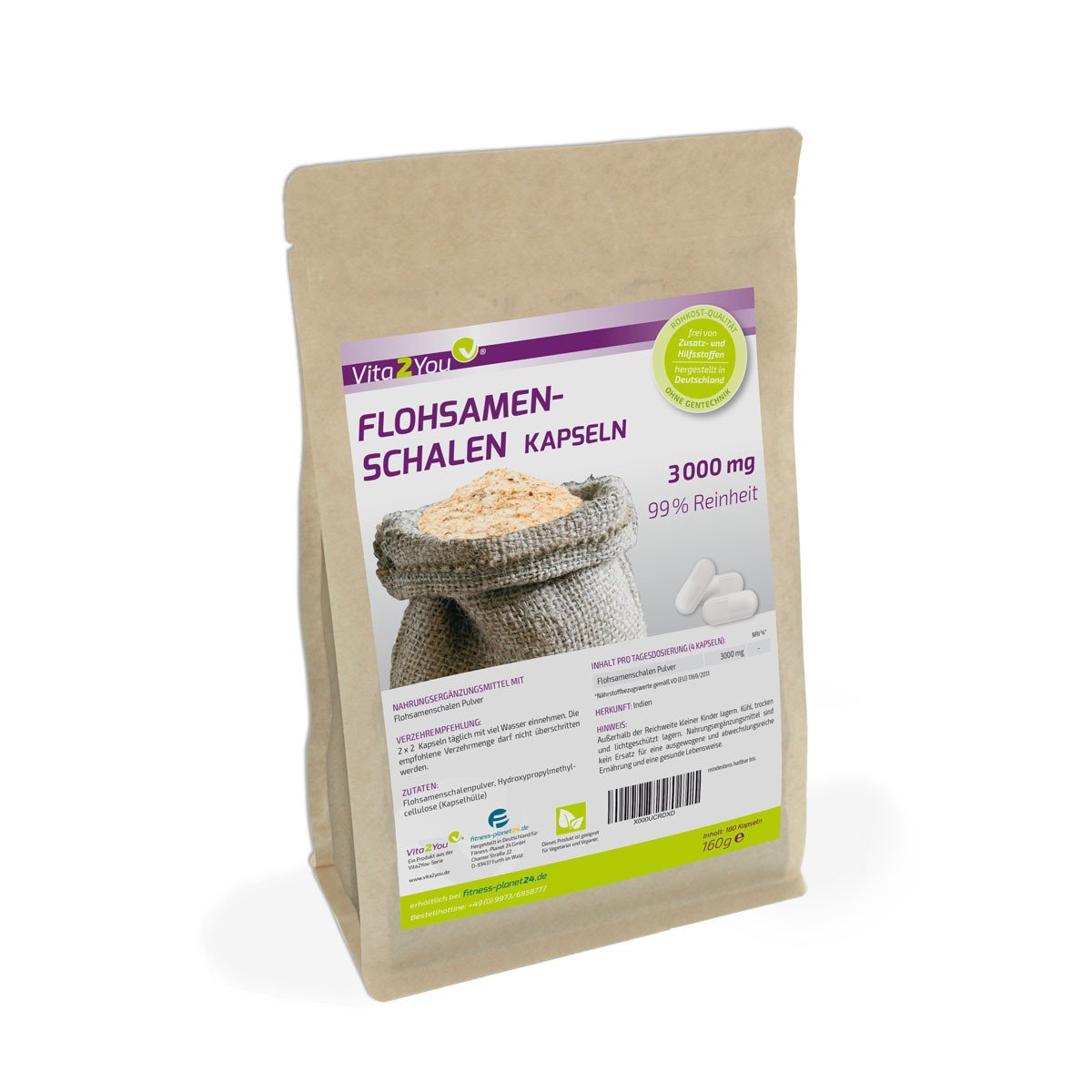 Vita2You Psyllium Seed Pods Organic - 750mg Per Capsule - 99% - 180 Capsules
