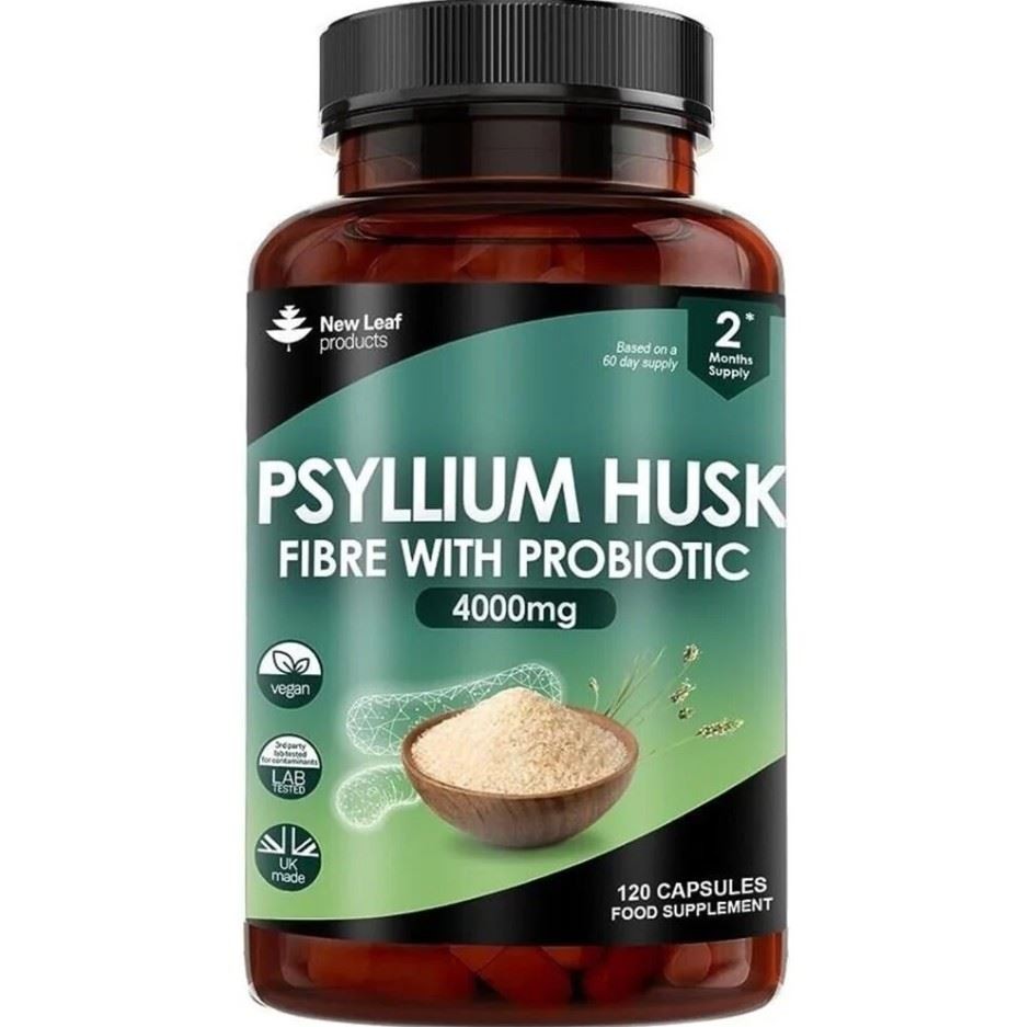 Fibre Supplement 4000mg Psyllium Husk with Acidophilus - High Strength - Natural Soluble Fiber Supplement from Plantago Ovata Seeds, 120 Psyllium Husks Capsules Vegan, UK Made by New Leaf