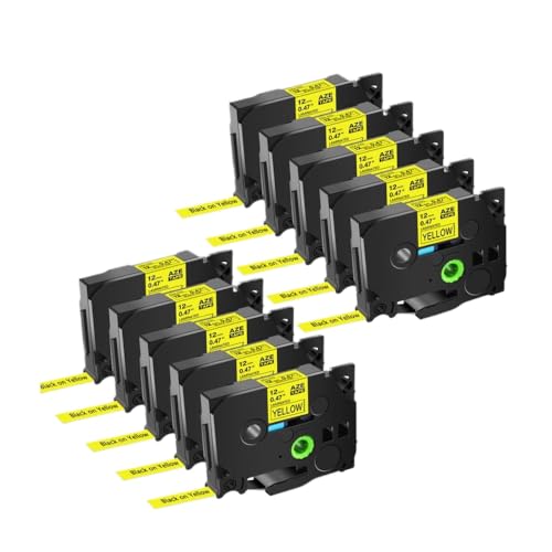 IYBYNYHN 10Pcs Tz 231 Black On White Label Tape 221 Laminated Tape 431 731 Labeling Ribbon Compatible With PT P700 Label Printer(10PK Black on Yellow)