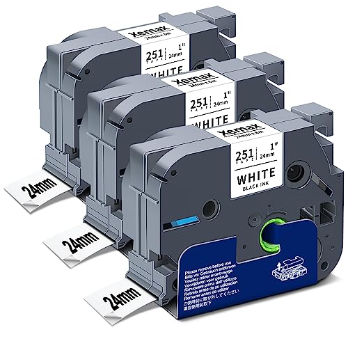3X XemaX 24mm Label Tape Replacement for Brother Tze-251 Aze251 TZe251 TZ251 TZe Laminated Tape Black on White Compatible for Brother Labeller PT-D600VP PT-H500 PT-2730 PT-P700 PT-P750W PT-E550WVP