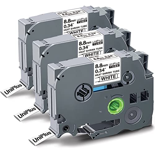 UniPlus 3X Compatible with Brother Hse 8.8mm Heat Shrink Tube Label Tape Replacement for HSe-221 HSe221 Black on White for P-Touch PT-D600 PT-P700 PT-P750W PT-E550WVP PT-9700PC PT-E300VP PT-P900W