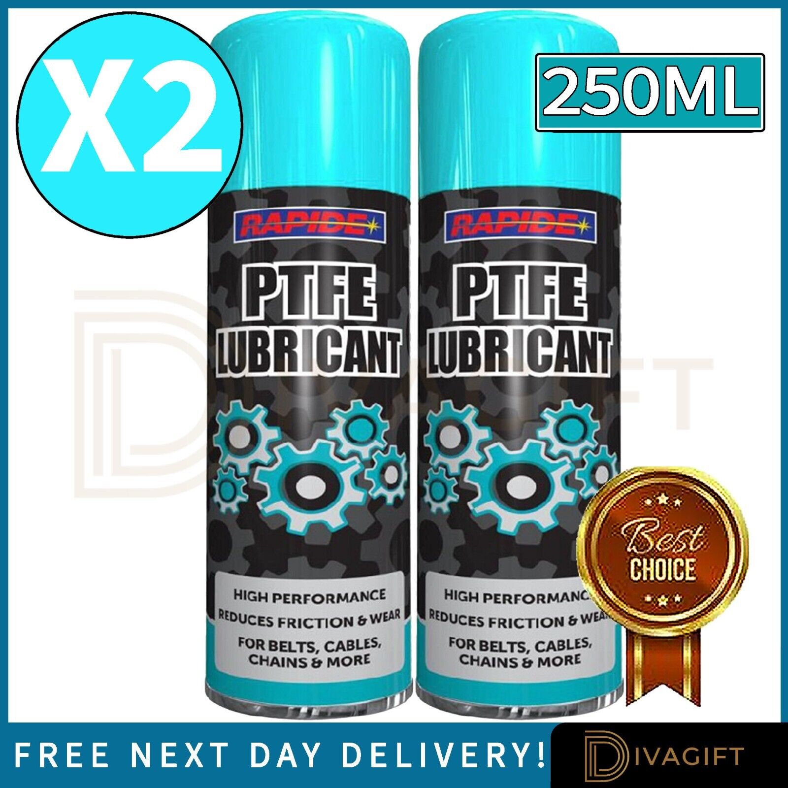 PTFE LUBRICANT SPRAY HIGH PERFORMANCE LUBE OIL CAR BIKE CHAIN BELTS 250ML x2