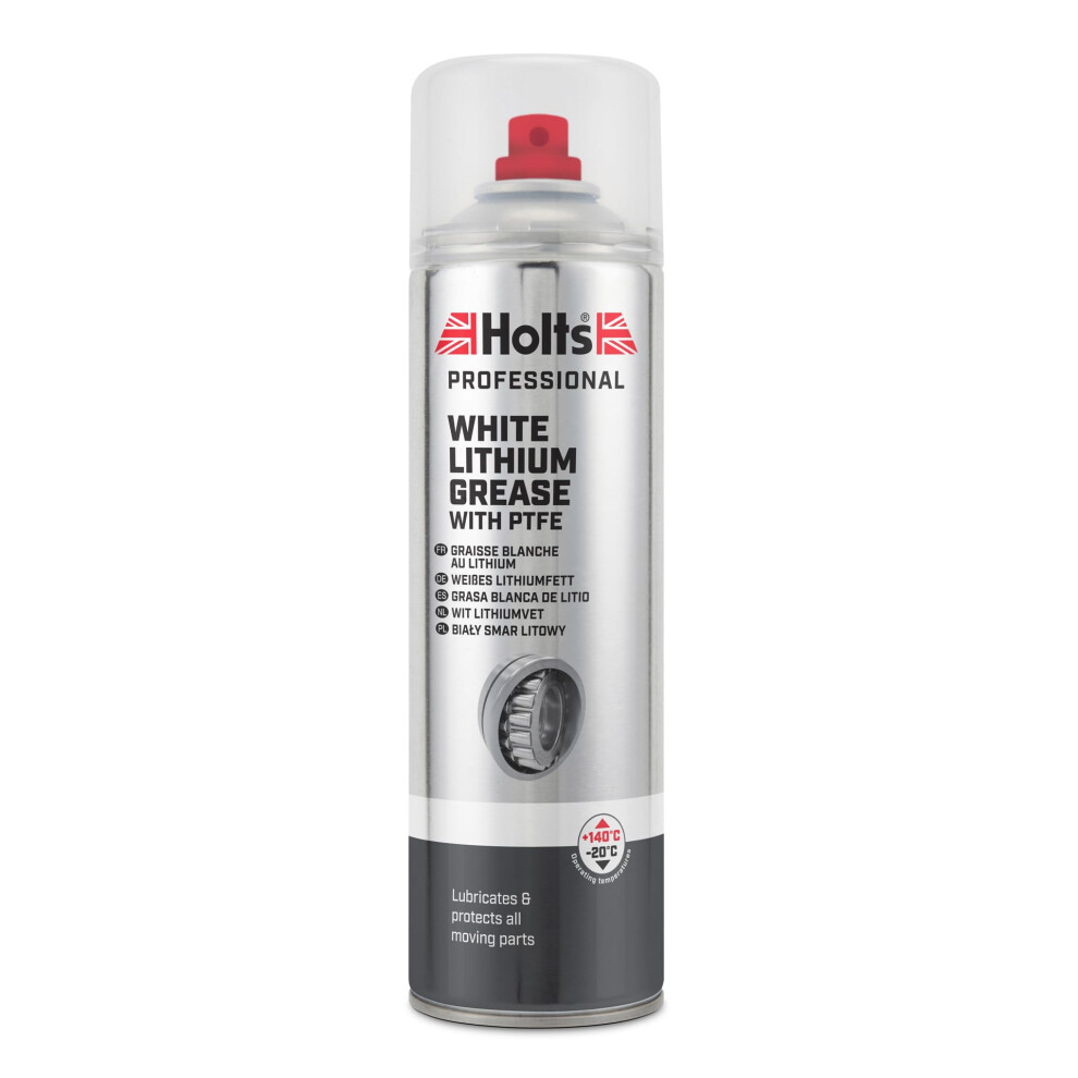 Holts White Lithium Grease Spray - Heavy Duty for Moving Parts, High Performance With PTFE for Ultra-High Cling, Reduce Friction & Prevent Wear, Professional Spray, 500ml