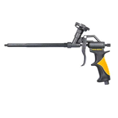 TOUGH MASTER Foam Gun Professional Heavy Duty Aluminium Foaming Gun with Double PTFE Protection Stainless Steel Tube and Needle Spray Applicator with x2 Plastic Nozzles x2 Plastic Extension Tubes