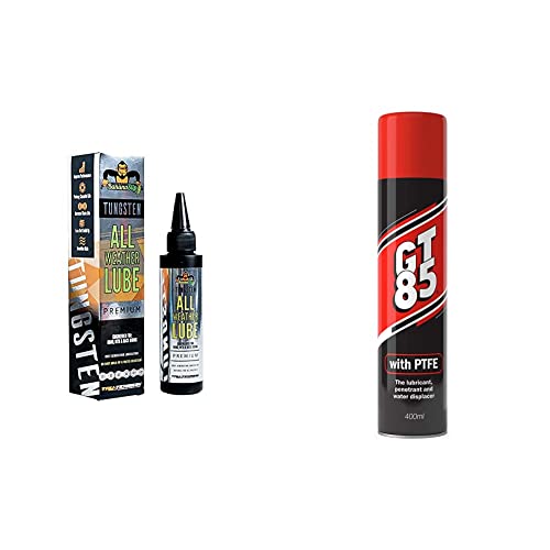 Tru Tension BananaSlip Tungsten All Weather Bike Chain Lube – Bicycle Chain, Cassette & Drivetrain Lubricant 50ml & GT85 Multi-purpose PTFE Spray Lubricant Penetrant and Water Displacer 400ml