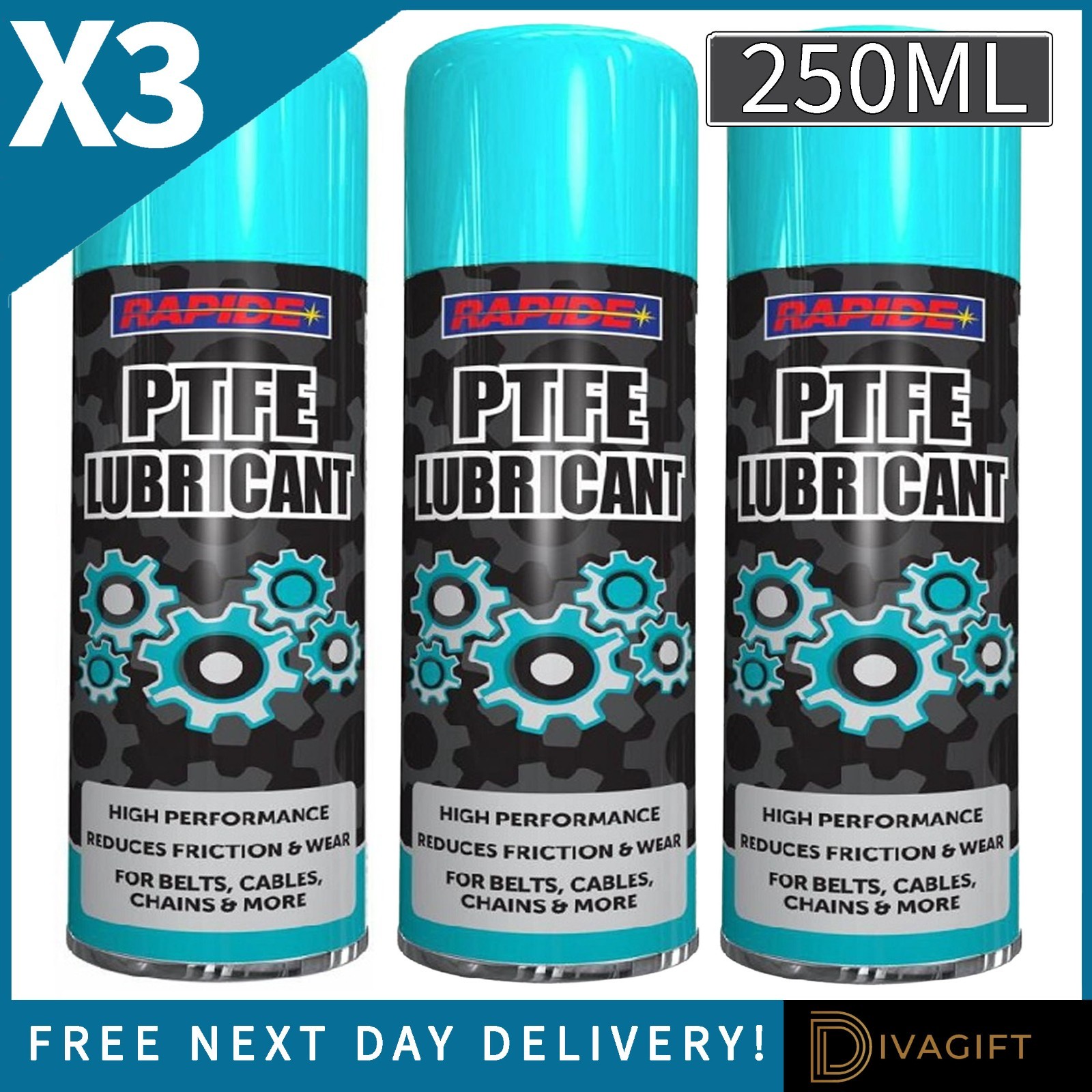 PTFE Grease 250ml Aerosol Lubricant Spray Can Chains Belts Cables Oil