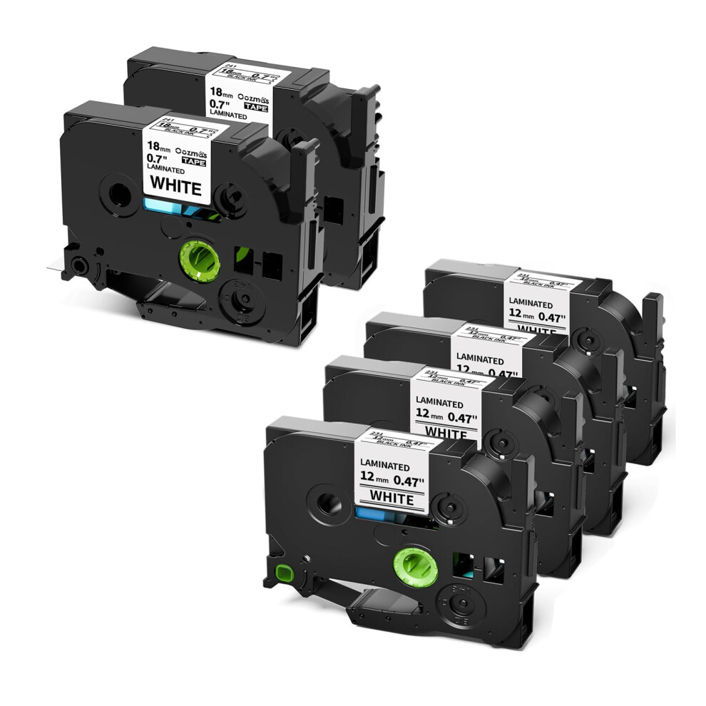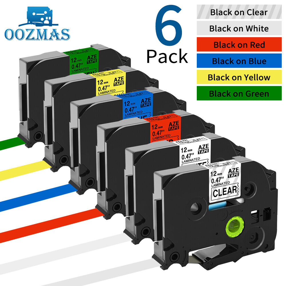 6 Pack Compatible Label Tape 12mm White for Brother PTouch M231 PT65 PTM95 PT90 Durable