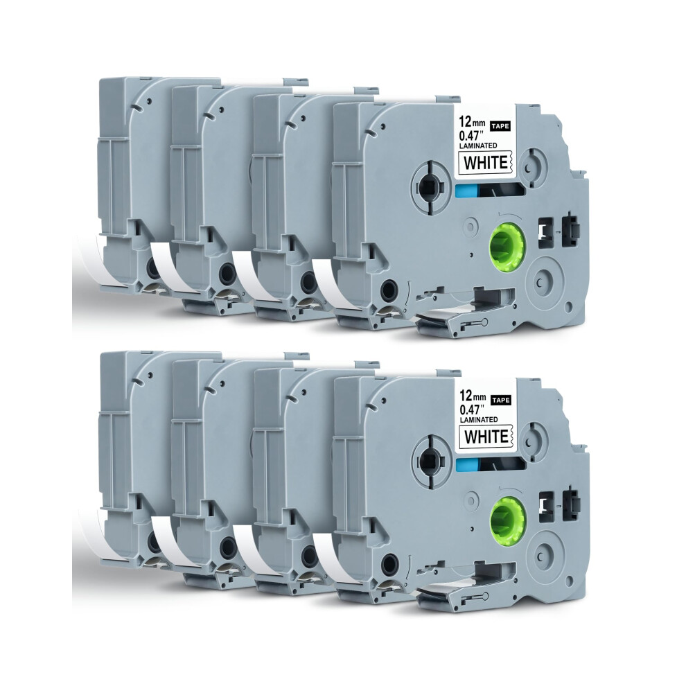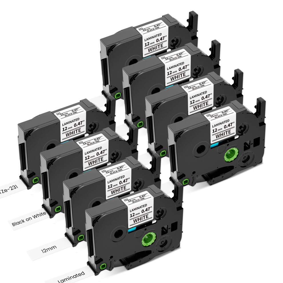 For Brother Ptouch TZe231 12mm Black on White Laminated Label Tape 8Pack for LongLasting Use