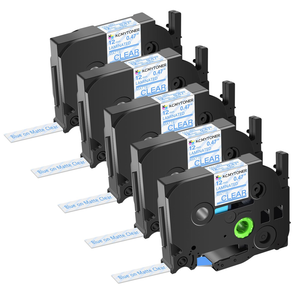 Label Tape for Brother PTouch TZeM33 12mm Blue on Matte Clear, Waterproof Laminated, 5 Pack