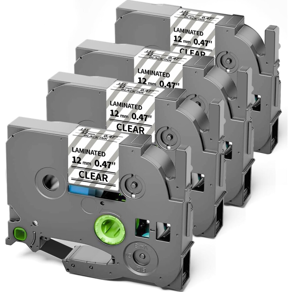 Label Tape for Brother PTouch TZe131 12mm Black on Clear, Laminated, Easy Peel, 4Pack