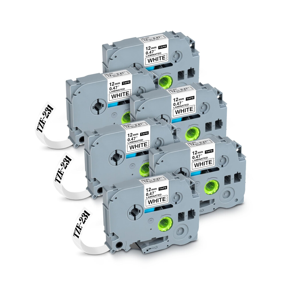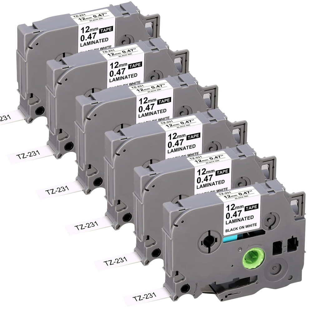 Label Tape 12mm TZe231 Laminated White, Compatible Replacement 6Pack for Brother PTouch PTD210 D220 D410 D600 H110