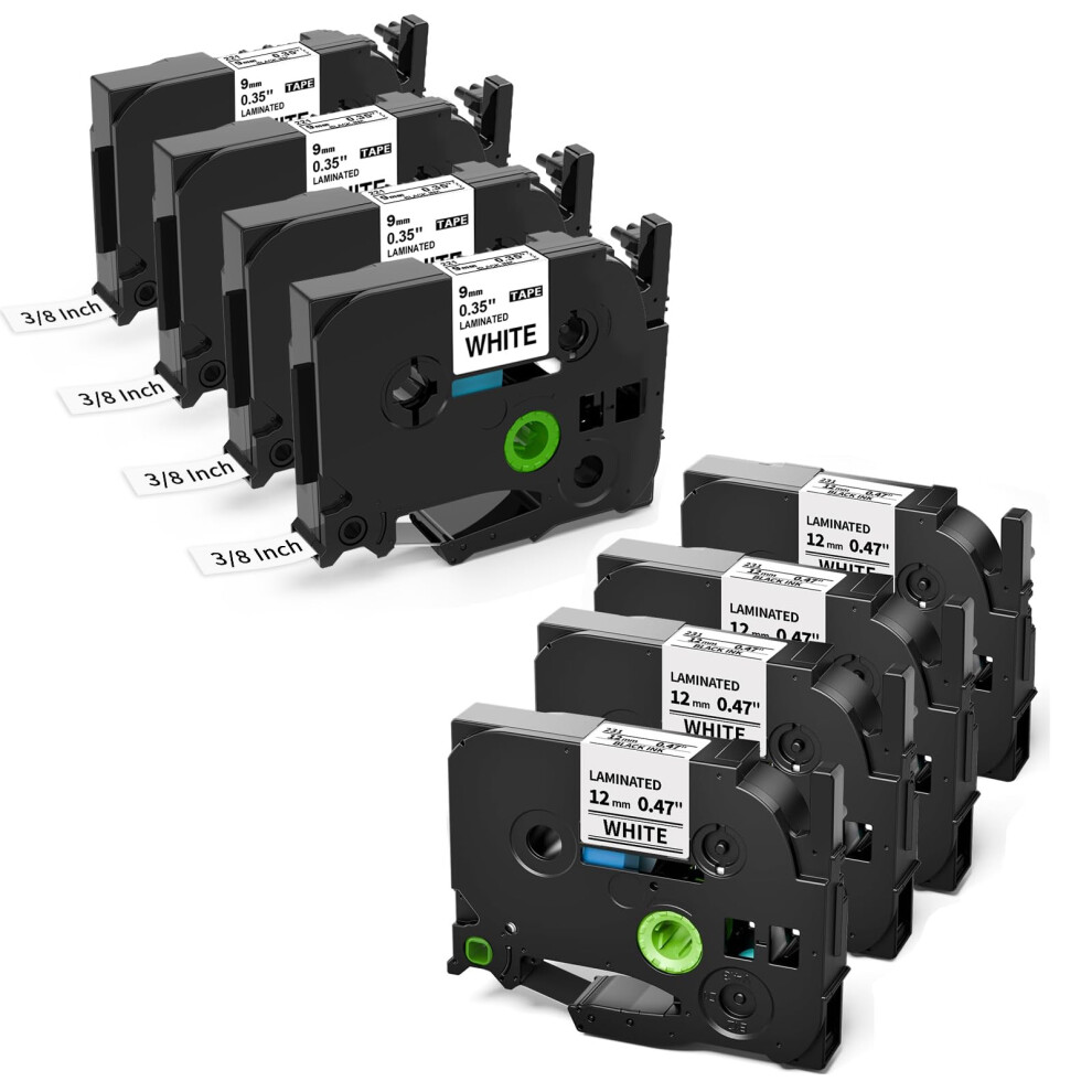 Label Maker Tape 9mm 12mm Black on White for Brother Ptouch PTD210 D220 D200 PTH110, 8Pack