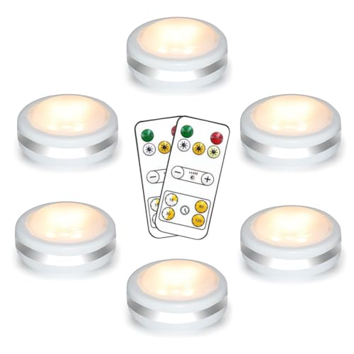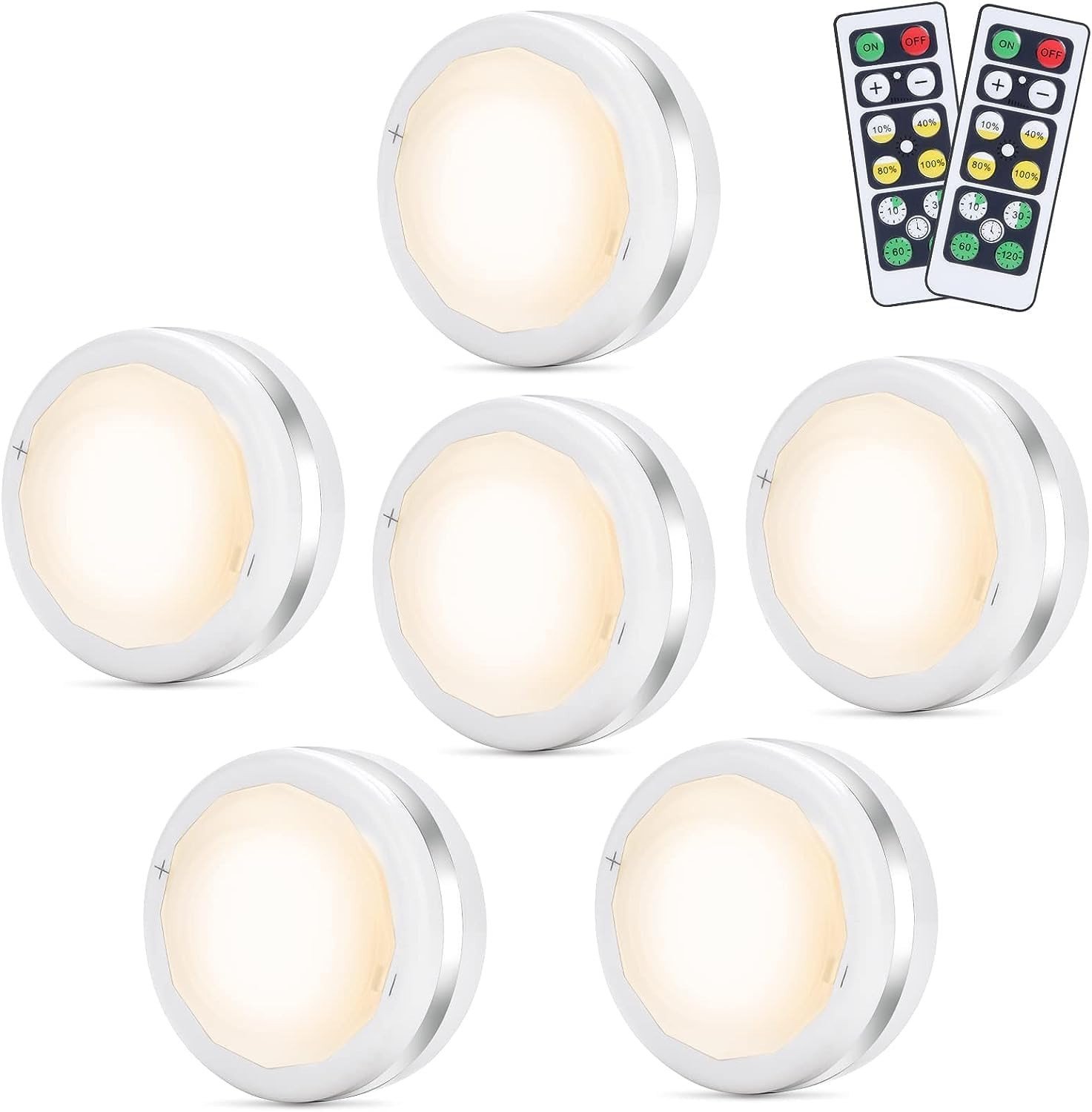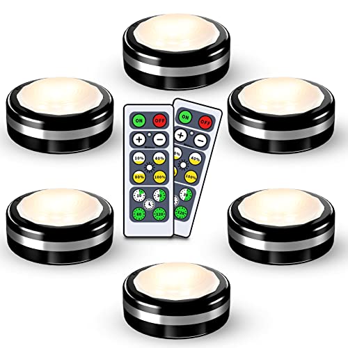 WOBANE Under Cabinet LED Lighting Kit, Dimmable LED Puck Lights with Remote Control, Under Counter Lighting for Kitchen,Display Cabinet,Cupboard,Shelf,Bookcase,2700K Warm White, Timing,Set of 6