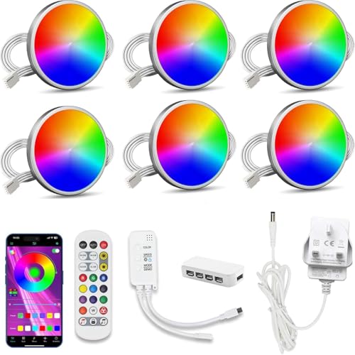 RGBW LED Puck Lights, 6 Pack, 16 Million Colors, 28 Modes, App & Remote Control, Under Cabinet Lighting Multi Colors Changing