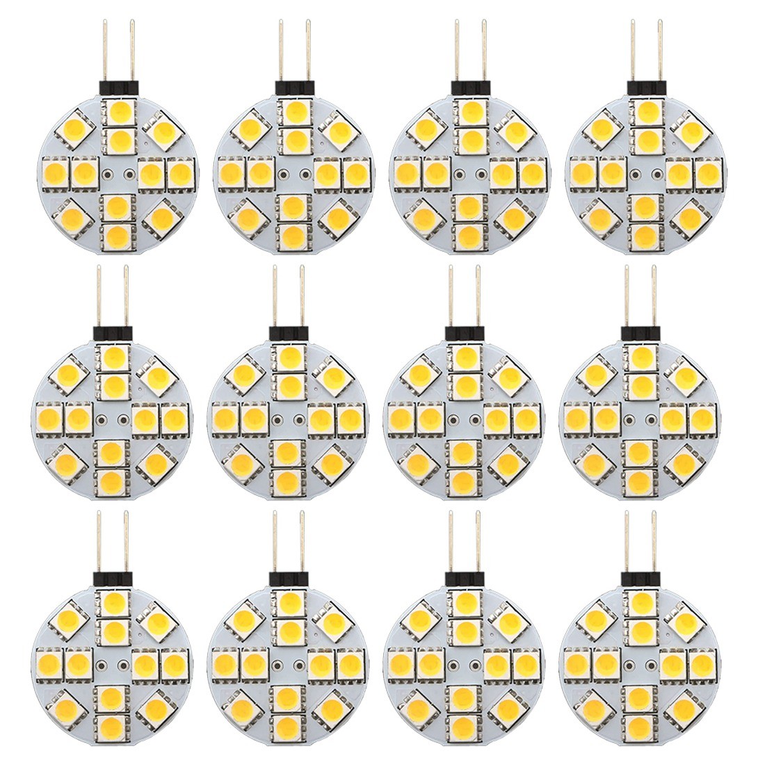 12PCS G4 Puck Lights LED Bulbs Side Pin Base Round G4 5050 12SMD LED RV7076