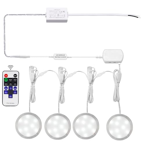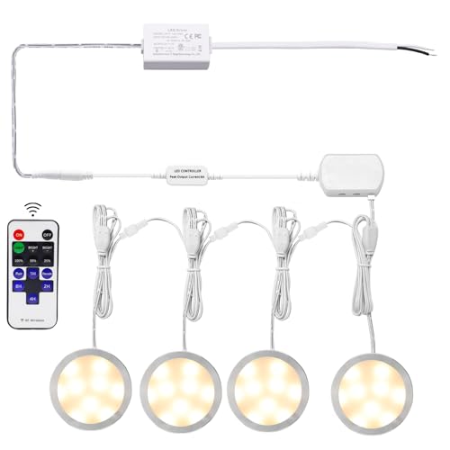 AIBOO Linkable Under Cabinet LED Lighting 12V Dimmable Puck Lights Hardwired with Wireless RF Remote Control for Kitchen Mood Lighting(4 Lights, Warm White)