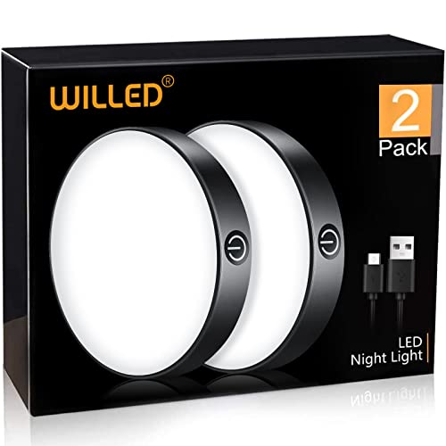 WILLED Tap Light Rechargeable, 6000K Dimmable Touch Light Buit-in 1000mAh Large Battery, Stick on Closet, Portable LED Puck Night Lights for Cabinet, Wardrobe, Counter, Kitchen, Bedroom (2 Pack)