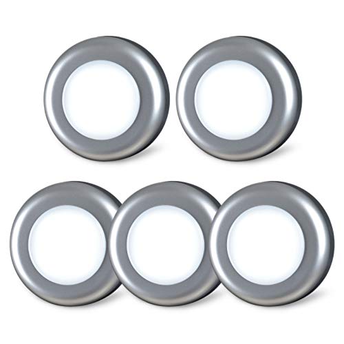STAR-SPANGLED Push Tap Lights, Stick on LED Touch Puck Lights AAA Battery Operated, Press Spot Lights Indoor for Cupboards, Wardrobe, Cabinet, Closet, Kitchen (2.8inch, Silver, Cool White, 5 Pack)