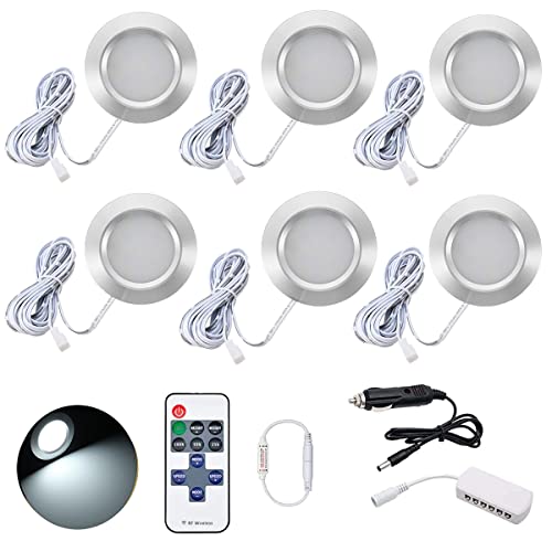 JUTTAUTO 12V Interior LED Spot Lights, Campervan Lights, Dimmable Roof Ceiling Down Lights with Remote Control, Motorhome Lighting for T4 T5 Campervan Caravan Boat Yacht, 6 Ultra Slim Puck Lights Kit
