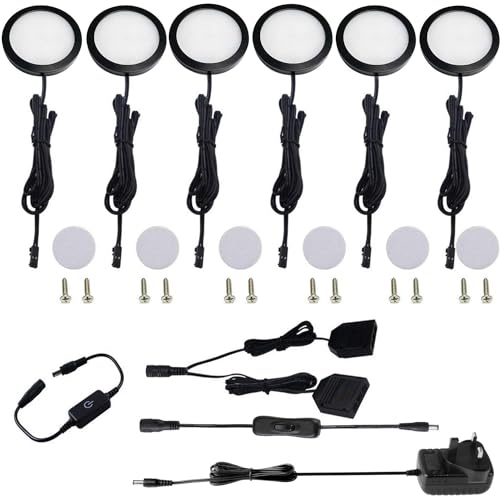 AIBOO Under Cabinet LED Black Cover Puck Lights Kit with Touch Dimmer Switch for Kitchen Cupboard Closet Lighting (6 Lights,Warm White)