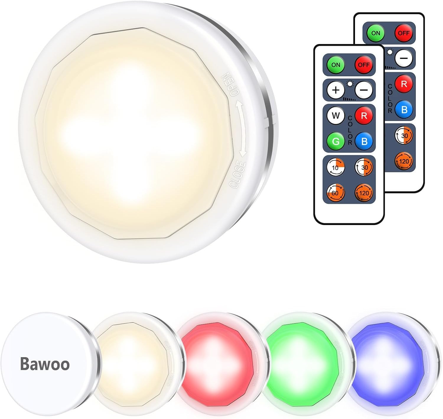 Bawoo Under Cabinet Lights, RGBW Wireless LED Puck Lights Remote Control,3500/4
