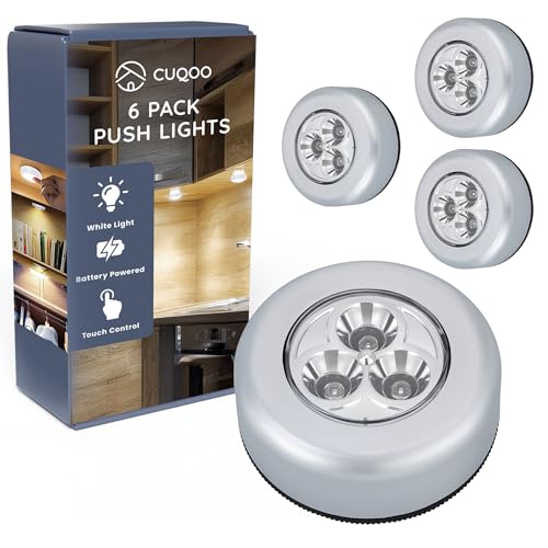CUQOO LED Lights – 6 Pack Cabinet Lights with Touch Control – Battery Operated Puck Lights for Kitchen, Wardrobes, Cupboards, Stairs – Stick-On, Wireless & Easy to Install
