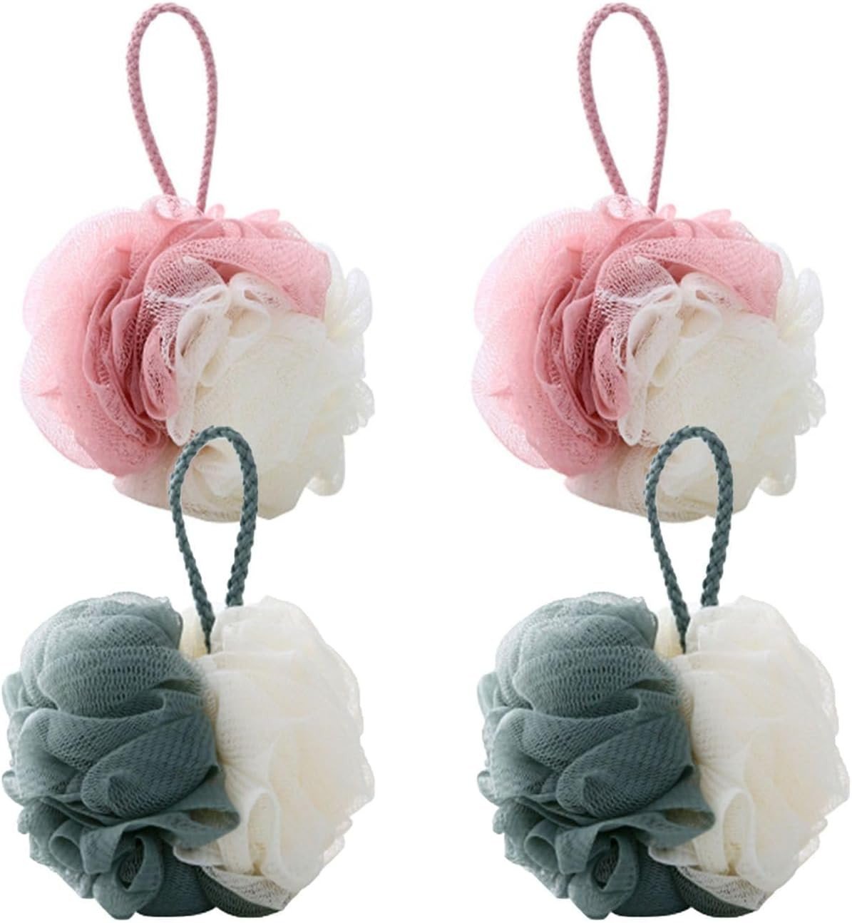 Set of 4 Flower Color Shower Puff Loofah Exfoliating Shower Sponge Bath Sponge S
